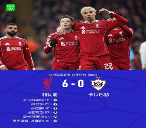 北京时间1月29日欧洲冠军联赛 联赛阶段 第8轮,利物浦对阵卡拉巴赫。利物浦麦卡利斯特梅开二度,维尔茨破门,萨拉...